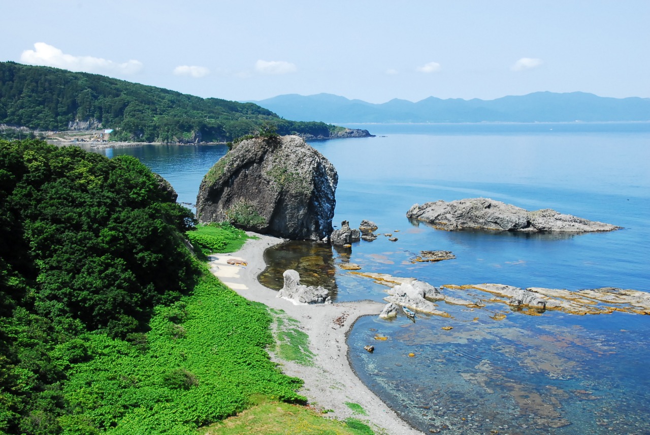 津軽国定公園に指定されている「袰月海岸高野崎」は、北に北海道、西に龍飛崎、東に下北半島が一望できる絶景の地です。